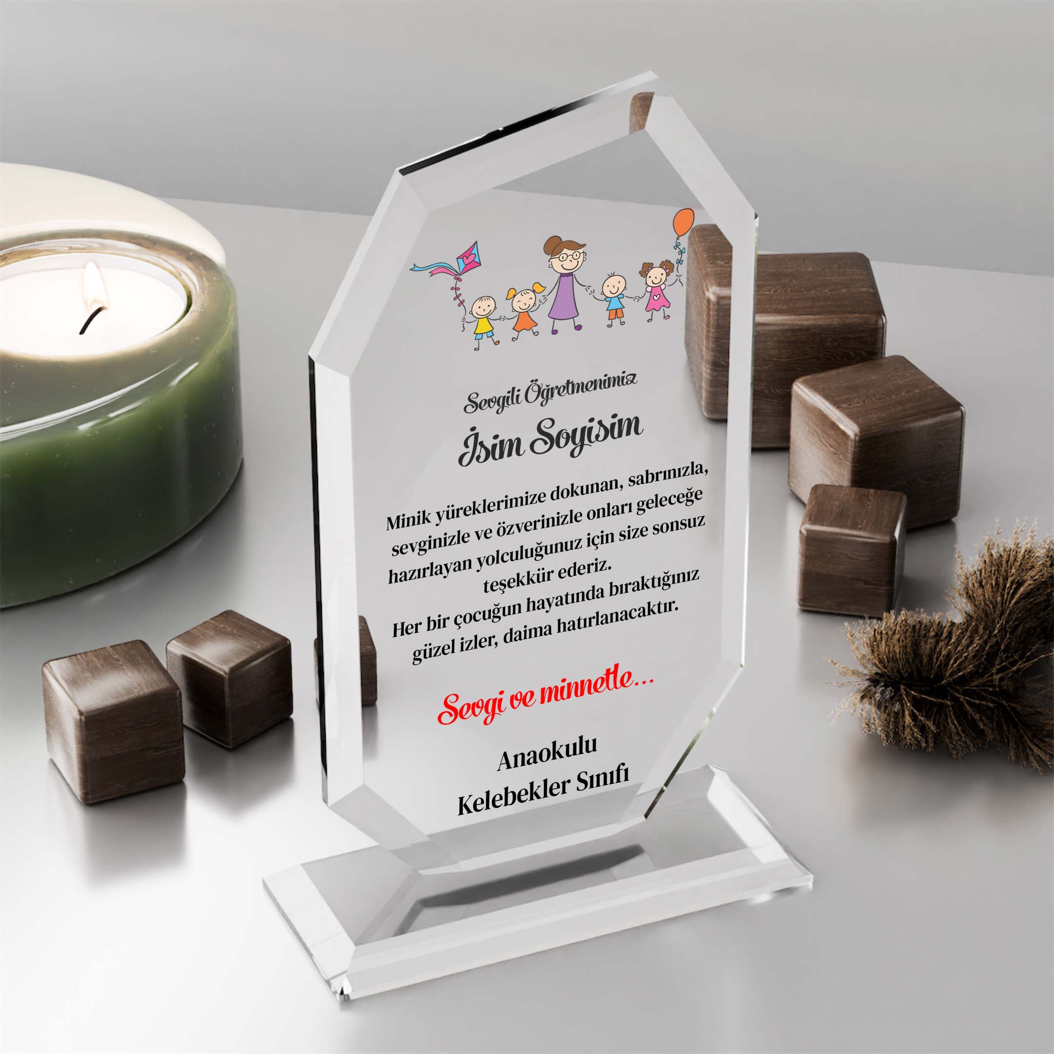 Antalya’daki okul öncesi eğitim kurumları, kreşler ve anaokulları için hazırladığımız Anaokulu Öğretmen Plaket, çocuklarımızın geleceğine ilk dokunuşu yapan değerli öğretmenlerimize sunulabilecek en zarif teşekkür hediyesidir. 8 mm kalınlığındaki kristal camın saflığı, öğretmenlerimizin sabrını ve emeğini simgeler.
