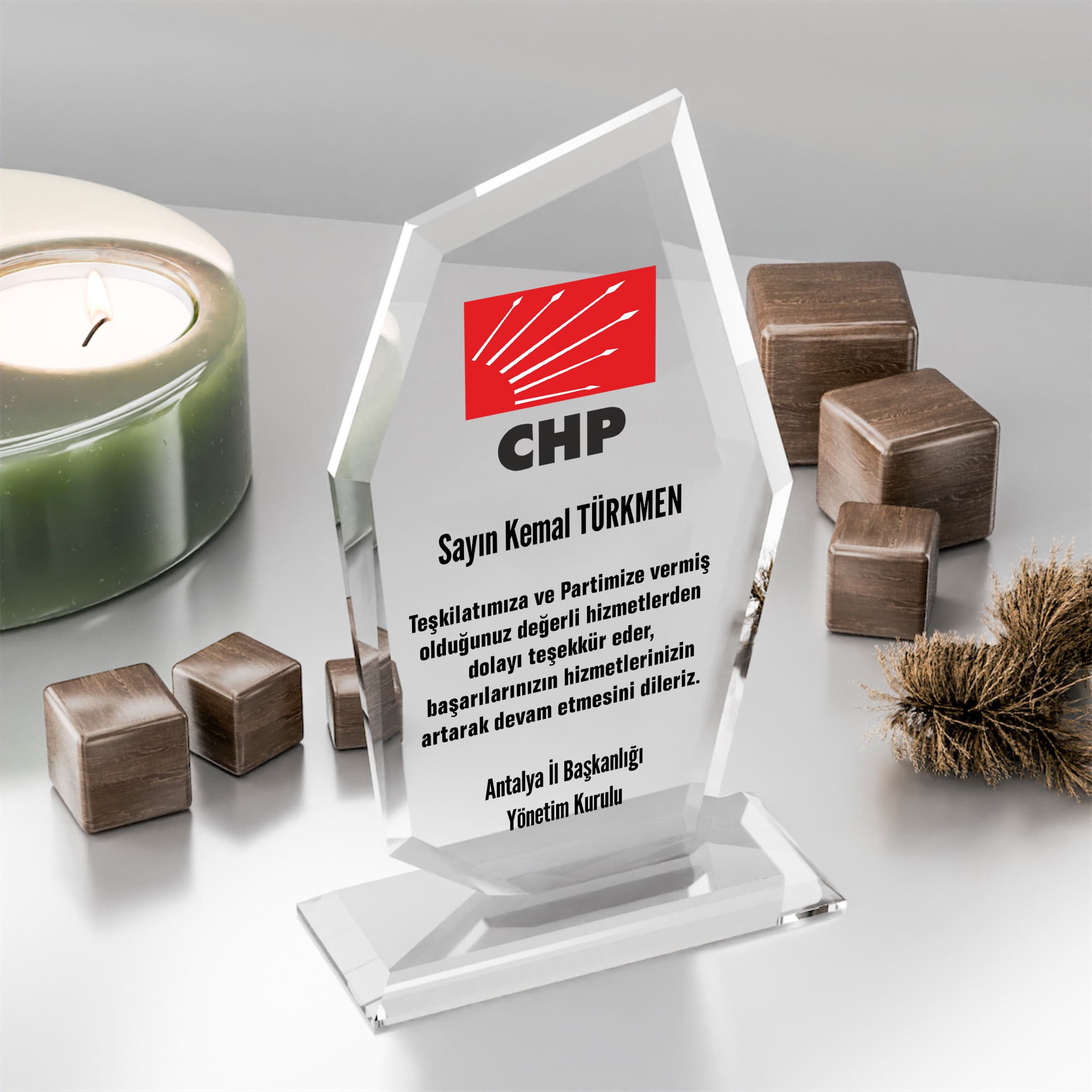 CHP teşkilatları tarafından sıklıkla tercih edilen bu plaket, onur belgeleri, teşekkür ödülleri veya hizmet anısına anlamlı bir hediye olarak sunulmaktadır. Kaliteli işçilik ve hızlı teslimat garantisiyle hizmet vermekteyiz.