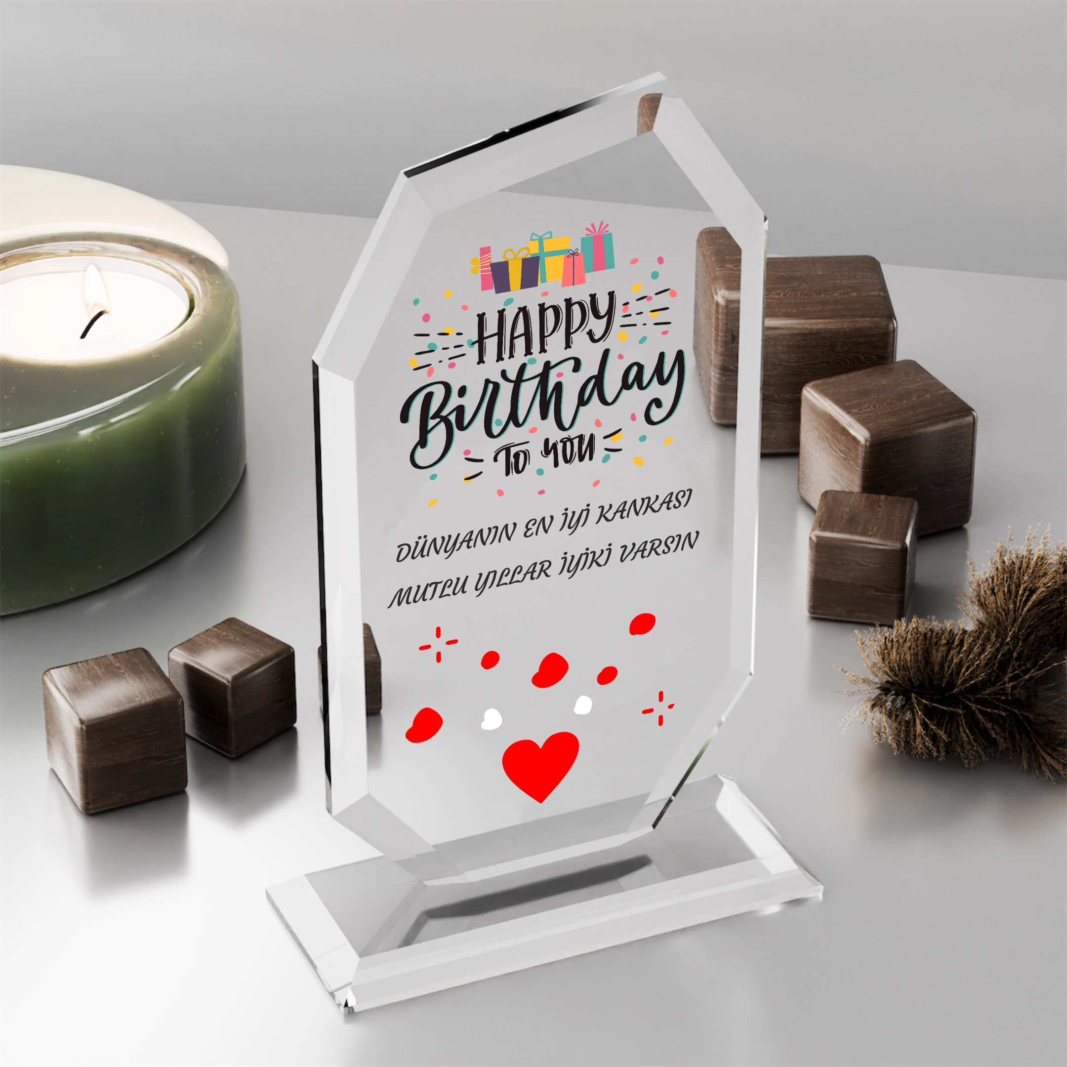 Sevdiklerinize sadece bir gün değil, ömür boyu saklayacakları bir hatıra bırakın! Antalya Doğum Günü Hediye Plaket ürünümüz, 8 mm kalınlığındaki kristal camın zarafeti ile en içten mesajlarınızı birleştiriyor. 12×20 cm boyutlarındaki bu özel tasarım, “İyi ki doğdun” demenin en prestijli ve kalıcı yoludur.