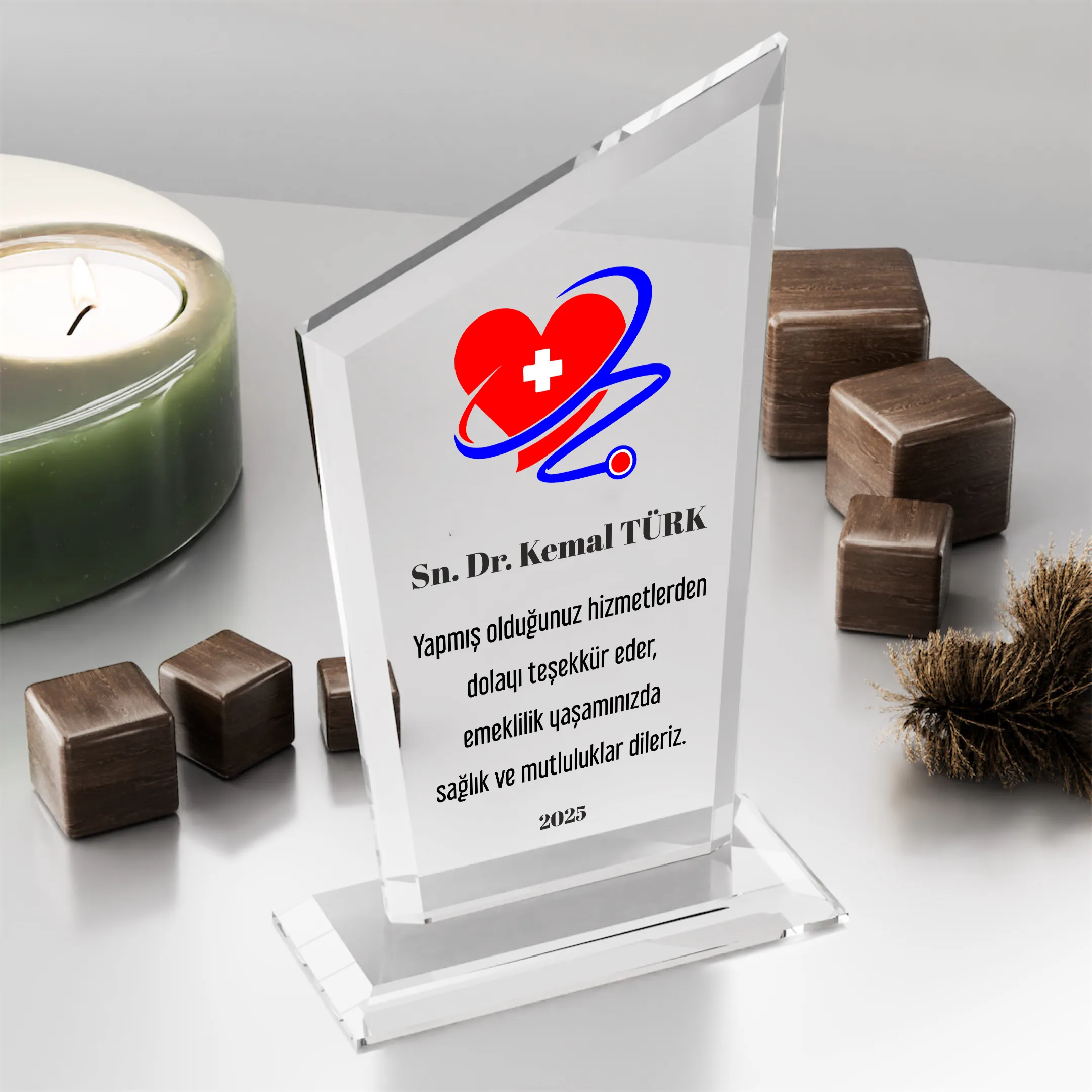Antalya’daki değerli hekimlerimiz ve sağlık çalışanlarımız için tasarlanan Doktor Kristal Plaket, minnetinizi ifade etmenin en şık ve kalıcı yoludur. 8 mm kalınlığındaki premium kristal camdan üretilen bu özel tasarım, tıp dünyasının estetiğini masalara taşıyor. Doktor Kristal Plaket Antalya