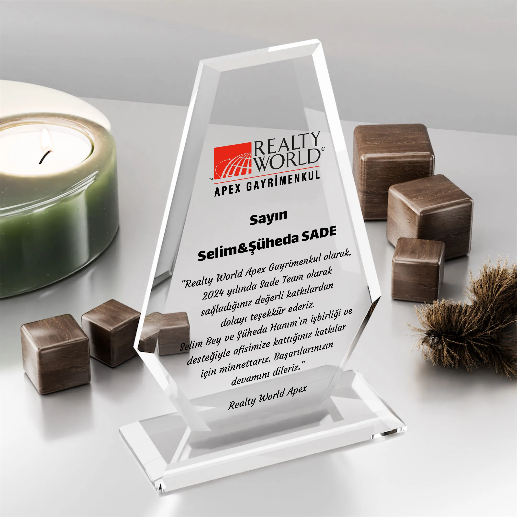 Kullanım Alanları: Antalya (Muratpaşa, Konyaaltı, Kepez) merkezli emlak ofisleri, kurumsal gayrimenkul ağları ve inşaat firmalarının satış ekipleri için düzenlenen ödül törenlerinde prestijli bir hediye seçeneğidir.