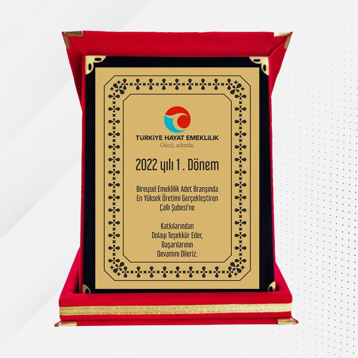 Teşekkür ve Başarı Plaketi (12×16 Orta Boy Kadife Seri)