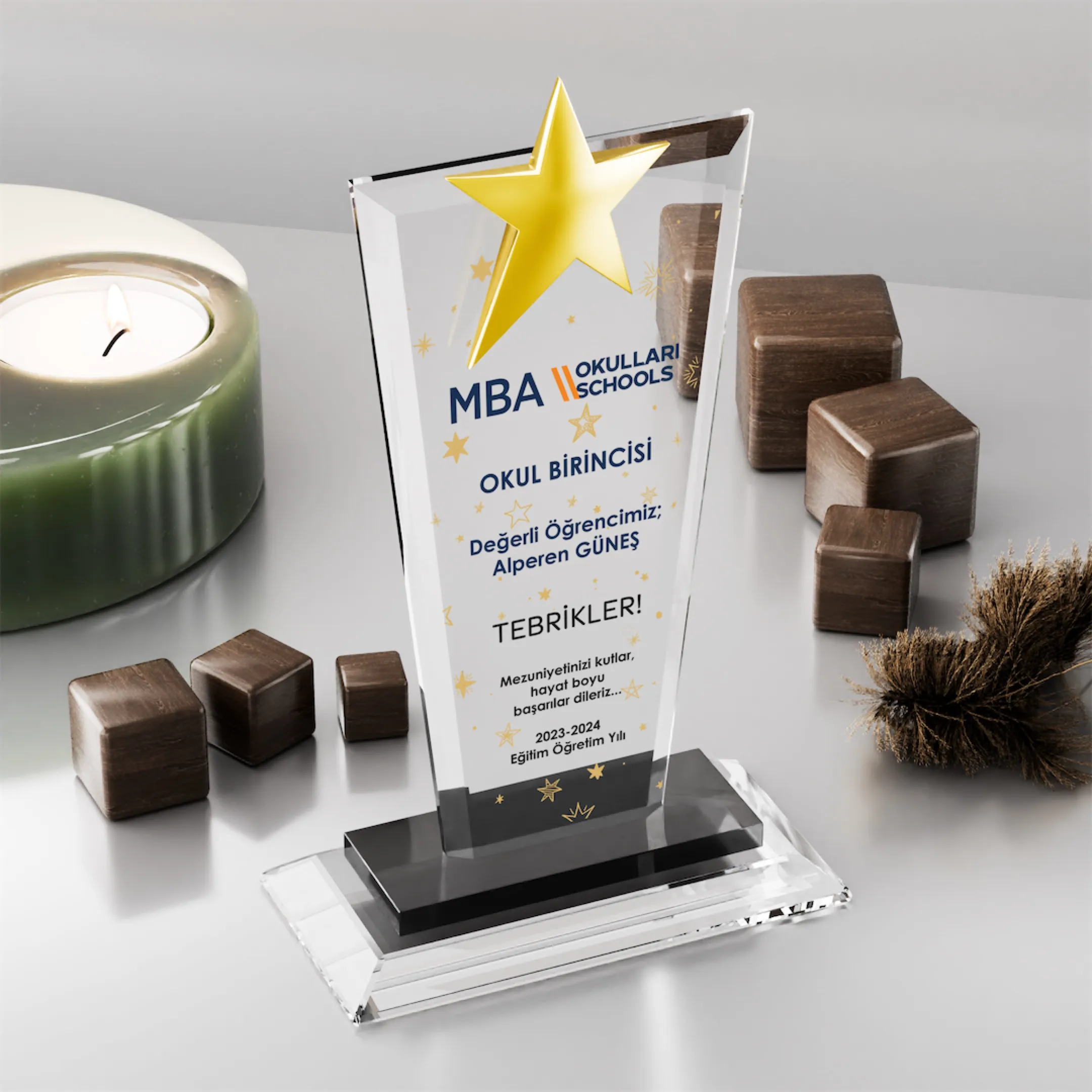 Antalya merkezli kurumsal şirketlerin bayii toplantıları, stratejik planlama oturumları ve proje kapanış törenleri için özel olarak üretilen bu model, motivasyonu “zirve” temasıyla birleştirir. 12×24 cm ebatlarındaki zarif dikey formu, 1,2 cm’lik cam kalınlığının getirdiği optik berraklıkla birleşerek logonuzun ve takdir mesajınızın kristal bir derinlikte sunulmasını sağlar.